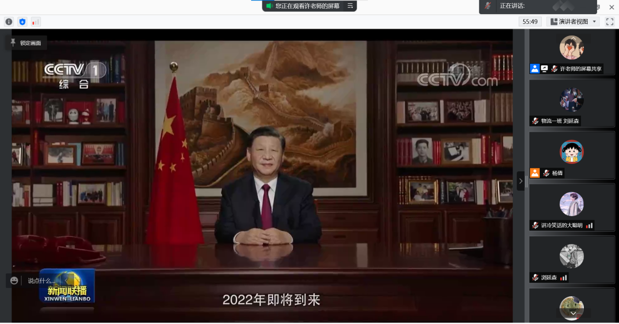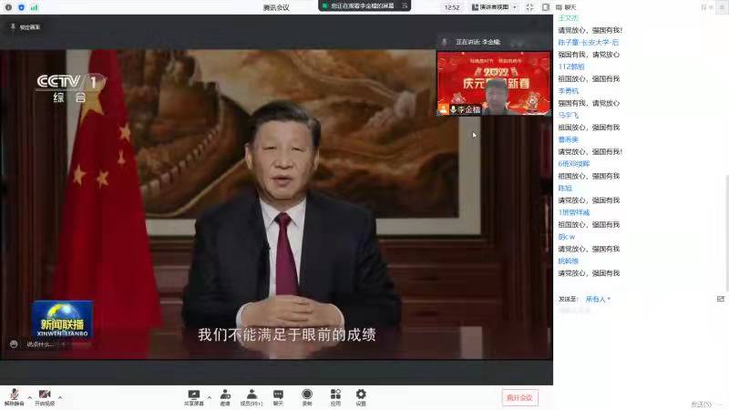 12月31日19:00,全体辅导员与学生云端相聚,共同收看习近平主席二