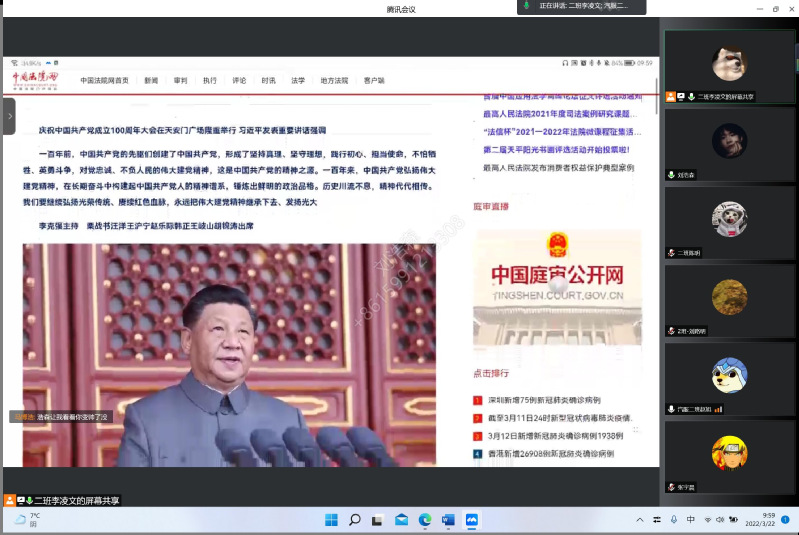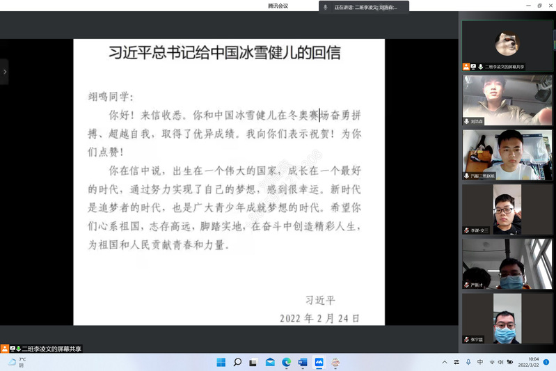 团支部书记李凌文汇报团支部今年开展党史学习相关活动,特别是学习党的十九届六中全会主要文件精神和《团章》第一章“团员”内容,并结合团支部工作和个人实际交流体会认识。