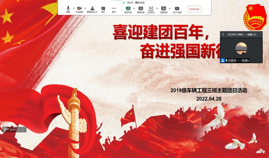 2019级车辆工程三班团支部通过腾讯会议开展“喜迎建团百周年,奋进强国新征程”主题团日活动。本次学习活动主要围绕“习近平在中国人民大学考察时重要讲话精神”,结合《新时代的中国青年》白皮书,使团员们深刻感悟团的精神,青年的担当,活动由团支部书记巩晓菲主持,思政班主任张雷老师及车辆三班全体团员参加。