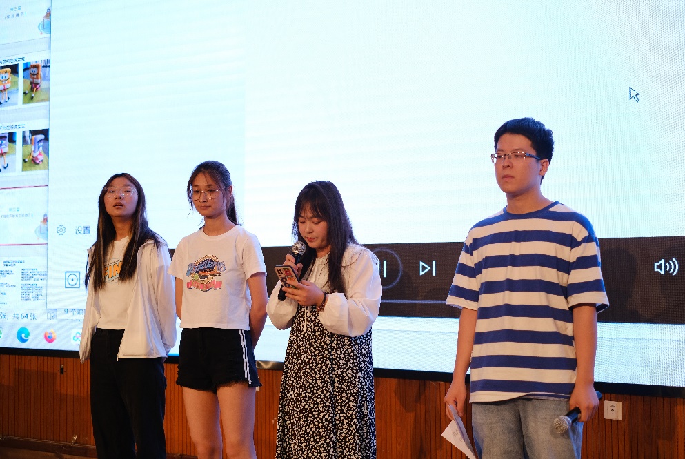 经过前期校内线上线下宣传及初赛选拔,此次决赛共有五支来自不同学院的队伍成功晋级。各参赛队伍通过ppt演示、作品展示、诗朗诵、配音表演等方式,向在场评委和观众展示了自己的作品。参赛作品五花八门又各具特点,有的可爱玲珑,有的独具匠心,有的别出心裁地将“5•25我爱我”和共青团成立一百周年的主题结合在一起,弘扬了爱国与积极向上的价值观。不仅使学生接触了解民间艺术,也能使同学们在团队活动中收获友谊与快乐,通过小组合作,更可以增强学生间的凝聚力,使他们在遇到挫折时相互鼓励,始终保持乐观积极的态度,直面未来道路上的挑战。