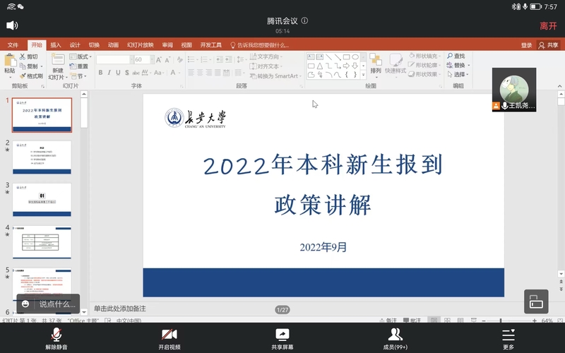 9月6日晚,成人视频 2022级本科生辅导员王凯尧、王文杰于线上召开新生报到政策解读会暨安全教育活动,2022级全体本科新生参会,会议由王凯尧主持。