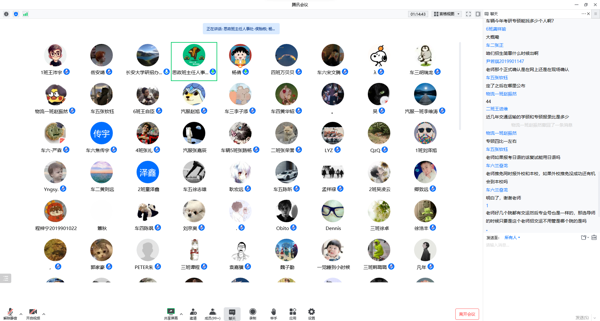 为帮助成人视频 2023届本科生更快更好地了解研究生考试的新政策、新方案,对报考院校、专业做出合理选择,9月18日下午,成人视频 以线上会议的方式开展了本科生就业指导讲座第三讲暨研究生报考指导交流会。此次讲座特邀请到学校研究生招生办公室王建东老师进行讲解,成人视频 思政班主任侯贻栋老师主持,2019级辅导员杨倩、许超然及成人视频 2023届本科生参加讲座。
