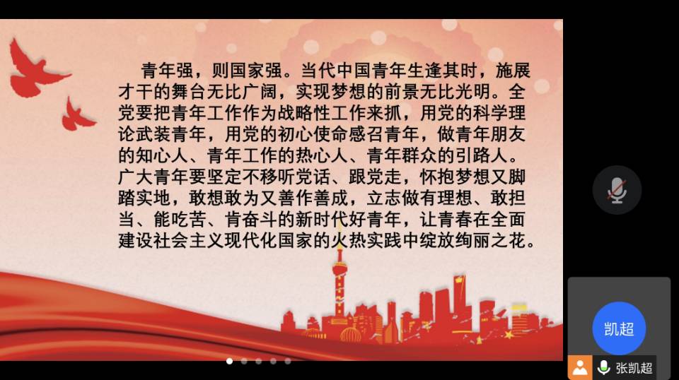 会中,张凯超首先强调了同学们要增强共同抗疫的使命感与责任感。疫情防控关乎每一个人,只有同学们众志成城,携手抗疫,积极配合学校的防疫工作,才能够击退疫情,迎来美好的明天。张老师着重强调大学生作为祖国的未来,更应该心系祖国,鼓励同学们积极主动了解祖国的重大政策,号召同学们做有理想、敢担当、能吃苦、肯奋斗的新时代好青年,鼓励大家积极参加学校举办的活动,认真学习。郑文捷指出大学生应该有较高的独立性与自主性,上大学之后,同学们应做到尽量少依赖父母,作为一个成年人,要有一定的担当和责任,同时,强调了学习对于同学们的重要性。