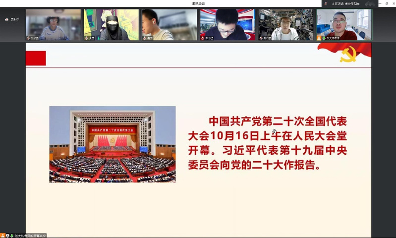 为了深入学习党的二十大精神,认真贯彻党的二十大方针政策,10月25日成人视频 车辆工程六班在线上开展了“学习党的二十大精神 青春奋斗正当时”的主题团日活动。活动由班主任张大伟老师主持,全班同学参加学习。
