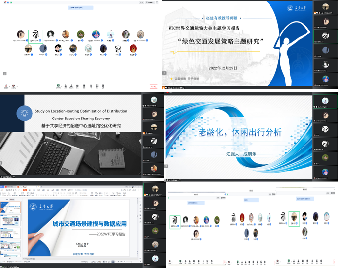 最后,赵建有教授对此次会议进行了总结,与同学们对生活和学习过程中遇到的问题进行了深入交流,继续学习2022年WTC会议技术报告和积极参加2022年12月31日的“第十一届交通运输研究(上海)论坛”,认真听取相关会议报告,开拓视野,在平时学习中加强思考,学有所思。此外,针对不同年级组织了专项会议,由各位同学分别汇报近期学习生活情况,报告结课作业、开题报告、学位论文的撰写进度,并提出了不同要求:要求一年级的同学们认真完成各科结课作业,在写论文过程中多阅读,勤思考,做好复习备考工作;对二年级的同学强调了论文开题报告写作格式的具体要求,带领大家学习优秀论文的撰写内容认真撰写开题报告,希望及时与老师和师兄师姐进行交流,不断完善开题报告内容;三年级的同学以及博士生继续完成学位论文撰写,妥善构建模型和算法,按时上交学位论文初稿。