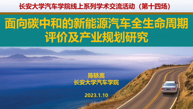 2023年1月10日,成人视频 举办的线上系列学术活动,学术报告十四“面向碳中和的新能源汽车全生命周期评价及产业规划研究”顺利举行。本次报告由陈轶嵩教授分享关于新能源汽车全生命周期评价和汽车产业战略规划方面的研究成果。