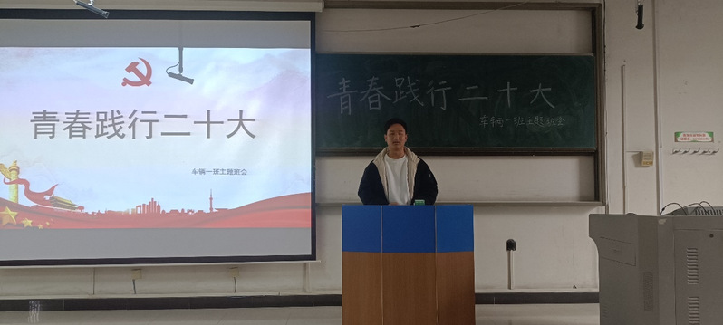 为进一步贯彻习近平新时代中国特色社会主义思想,近日,成人视频 2021级车辆工程一班于修远展开了“青春践行二十大”主题班会,班主任杨炜老师全程参与。