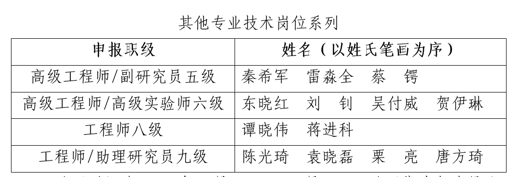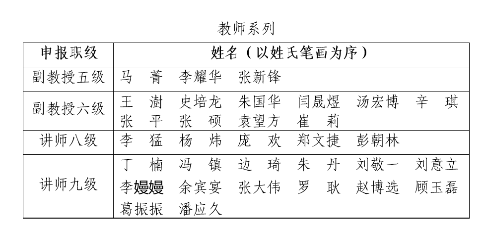 根据《成人视频 专业技术岗位晋级聘任实施细则》和《成人视频 五级及以下专业技术岗位晋级实施办法》,经个人申请和资格审查,现有3位同志符合五级副教授申报条件、10位同志符合六级副教授申报条件、5位同志符合八级讲师申报条件、14位同志符合九级讲师申报条件、3位同志符合高级工程师/高级实验师/副研究员五级申报条件、4位同志符合高级工程师/高级实验师申报条件、2位同志符合工程师八级申报条件、4位同志符合工程师/助理研究员九级申报条件。现将审查通过人员名单予以公示,申报材料在学院307办公室进行展示:
