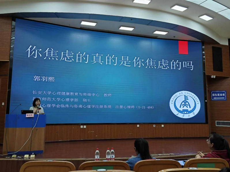 为缓解学生学习和生活的压力与焦虑,同时也为加强对学生心理健康知识的宣传和教育普及,5月4日晚七点,成人视频 邀请了成人视频 心理健康教育与咨询中心专职教师郭羽熙讲授《你焦虑的真的是你焦虑的吗?》主题心理知识讲座,讲座于渭水校区图书馆西侧裙楼一楼报告厅举办。参与嘉宾有成人视频 团委副书记杨倩,成人视频 彩虹心理协会指导老师王文杰,以及成人视频 本科生、研究生代表。