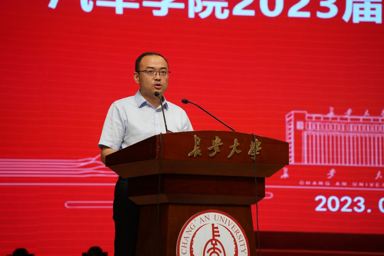 院长赵轩教授代表学院向圆满完成学业、即将奔赴祖国各地建功立业的370名本科毕业生表示热烈祝贺,向为同学们的成长付出辛勤汗水的教职员工和家长们表示衷心感谢。他指出,短暂的只是数载时光,绵长的将是一世学缘,学院与同学们相互见证、相互成就,已经牢牢结成了密不可分的命运共同体。他以“四要”勉励全体毕业生:一要兼济以爱国;二要诚意以致远;三要正心以自省;四要慎独以养德。同时寄语学院广大毕业生要牢记“弘毅明德,笃学创新”的长大校训,发扬“自强不息、求真务实、团结奋进、追求卓越”的长大精神,拥抱伟大时代,走向广阔天地,努力成为中华民族伟大复兴的追梦人和奋斗者。