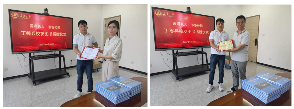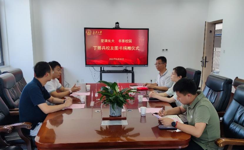 6月30日下午,成人视频 2009级交通运输专业毕业校友丁筹兵返校座谈,并向学院及校图书馆捐赠本人编著图书100册。成人视频 副书记、副院长周姗姗、图书馆图书采编部副研究馆员李均宏、团委学生创新创业实践中心主任石涌泉、学院办公室主任陈光琦参加了座谈及捐赠仪式。