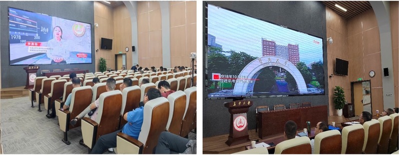 会后全院教职工集中学习了“2023年高校党组织示范微党课展播第9讲”和“习近平的教师情”。