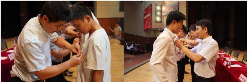 典礼最后,学院领导老师分别为本科生、研究生新生代表佩戴校徽,进一步增强了同学们的归属感。典礼在全场热烈的掌声中圆满结束。
