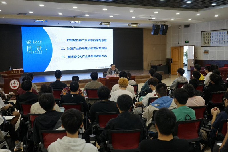 本堂思政课题为《大力推进现代化产业体系建设》,王建伟副校长立足当前全球新一轮科技革命和产业变革深入发展的背景,从我国现代化产业体系面临的复杂局面出发,围绕现代化产业体系的深刻意蕴、认清产业体系建设的现状与挑战、推进现代化产业体系建设着力点三方面的内容,结合实例与自身经历为同学们进行了深入浅出的讲解,向同学们深刻阐述了大力推进现代化产业体系建设的重要性,希望同学们在校期间也能树立远大理想,学会分析研判产业、行业的发展形势,将来为中国现代化汽车产业及能电产业的建设发展做出应有的贡献。