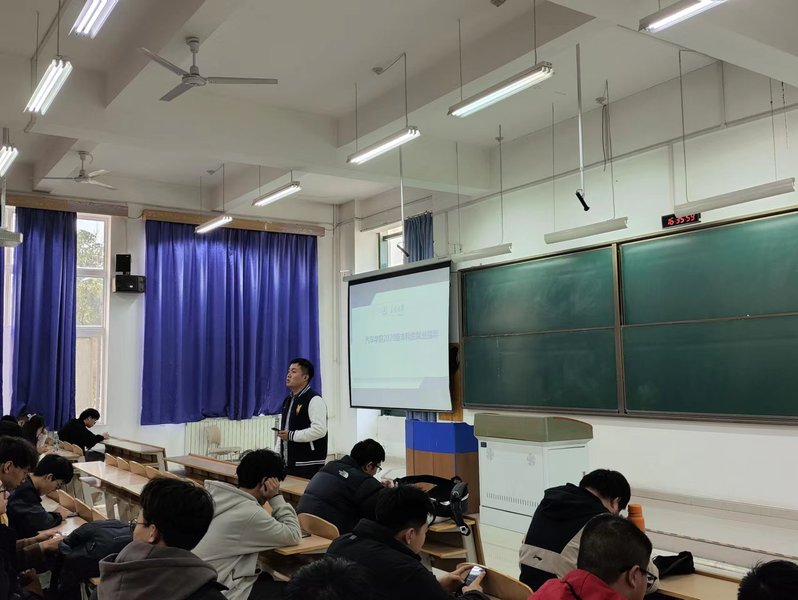 许超然老师分析了当前较为严峻的就业形势,动员同学们积极关注就业信息、参与招聘会、积累应聘经验。并且,许老师结合自身经验,分享了优秀简历的制作思路、面试技巧等内容,同时也给同学们传达了专业相关企业的招聘会的信息。