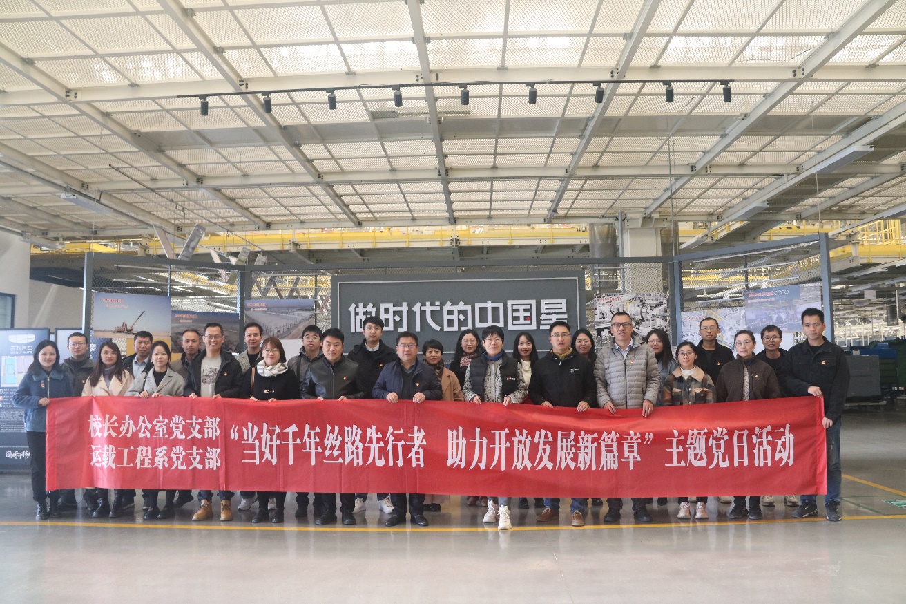 11月26日,校长办公室党支部与运载工程系党支部开展支部共建活动,前往中欧班列(西安)集结中心与吉利汽车西安制造基地参观学习。活动由校长办公室党支部书记郭万江、成人视频 运载工程系党支部书记牛世峰带队,成人视频 党委副书记崔莉、校长办公室副主任易磊、档案馆馆长刘伟及双方支部二十余位党员参加了此次活动。