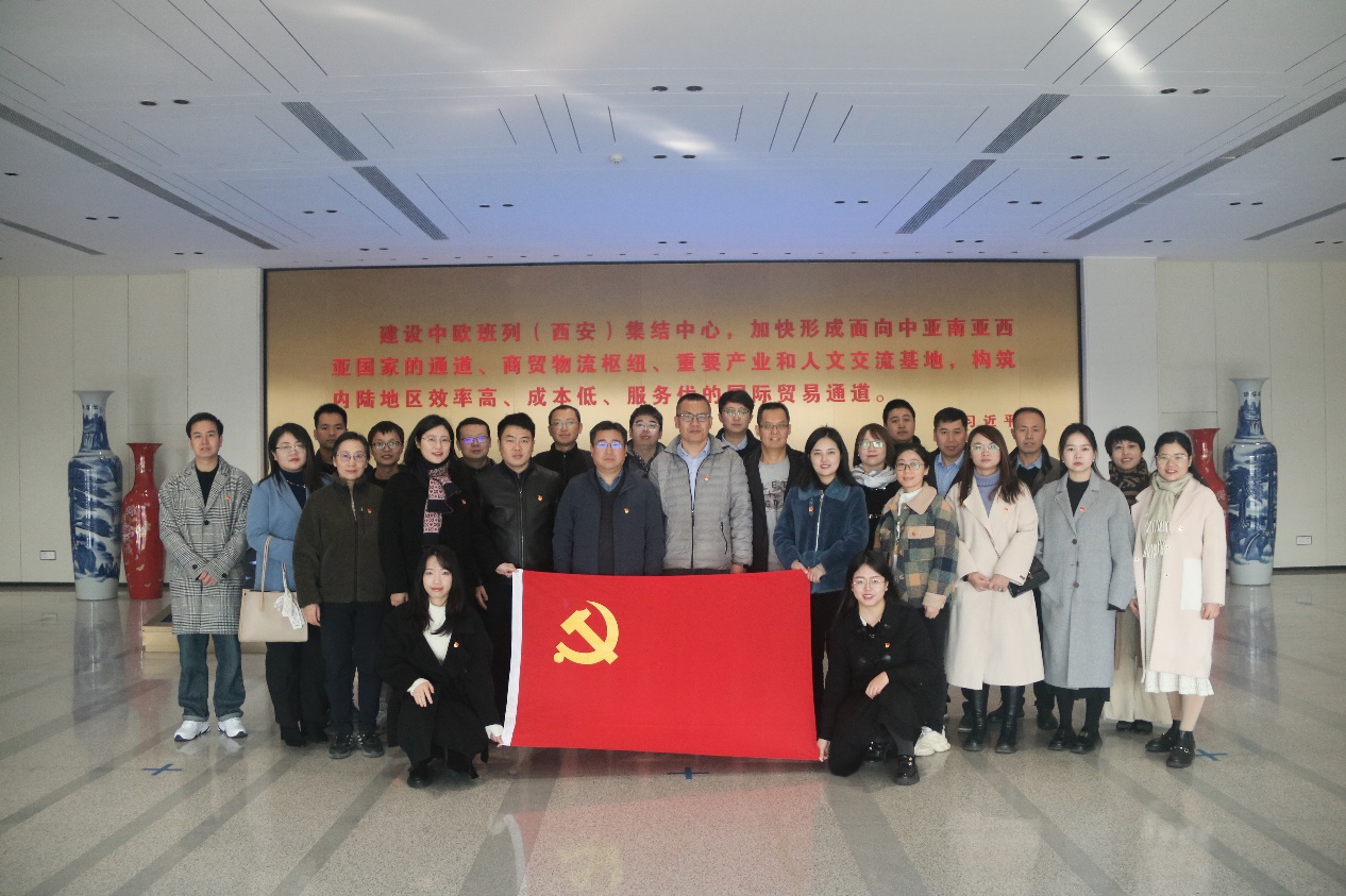 党员们首先来到西安国际港务区的中欧班列集结中心,这是中欧班列重要的物流中心之一。集结中心的工作人员向支部党员们介绍了货物装卸、运输规划以及与各方合作的情况,展示了中欧班列在推动国际贸易和物流发展方面的枢纽作用。通过深入参观集结中心的高效运作,党员们感受到了中欧班列作为丝绸之路经济带的关键角色。