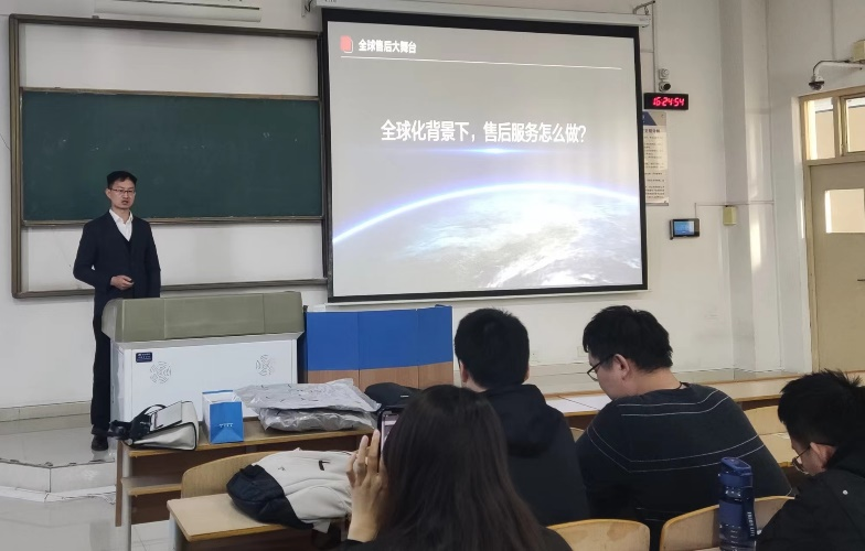 面向全球化背景,比亚迪汽车服务工程部谢锐围绕《售后服务的标准如何提高以及适应海外环境》为主题,讲解了关于售后出海的政策导向,鼓励同学在有能力的前提下可以前往海外开拓视野,赢得更好的发展机遇。