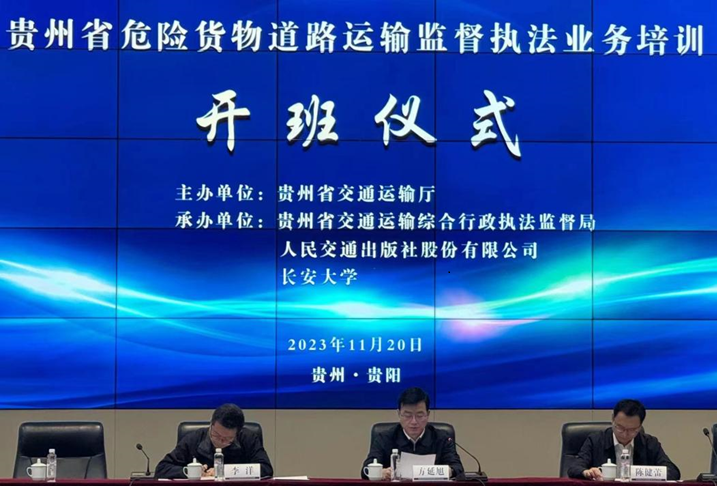 为深入贯彻落实党中央国务院、交通运输部以及贵州省委省政府的部署要求,11月20日,由贵州省交通运输厅主办,贵州省交通运输综合行政执法监督局、人民交通出版社股份有限公司、成人视频 联合承办的“贵州省危险货物道路运输监管执法业务培训班”在贵阳市顺利举办。来自贵州全省与危险货物道路运输和行政执法业务相关的400余名干部参加了培训。