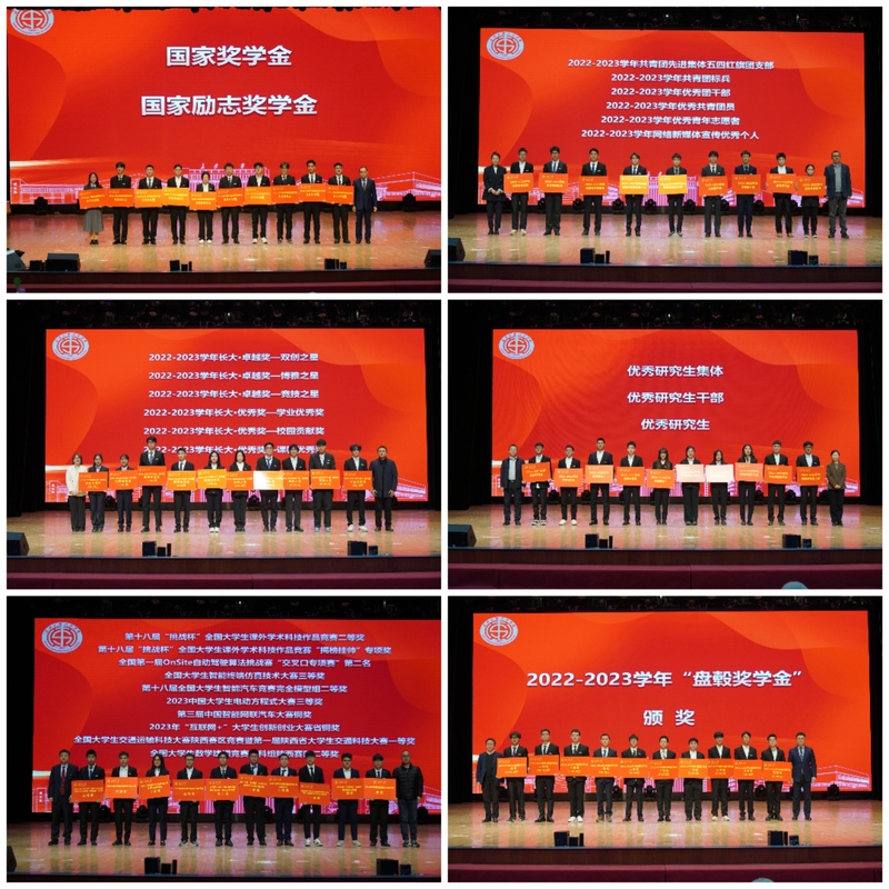 12月4日晚,成人视频 在北校区长安文化艺术中心大礼堂成功举办2022-2023学年优秀学生表彰大会暨“汽宇轩昂,渭梦启航”迎新晚会。在学院设立奖学金的各企业领导,学校党委办公室、校长办公室、社会合作处、研究生工作部、学生工作部、招生就业处、校团委、艺术教育中心、保卫处等职能部门领导及各兄弟学院领导受邀出席。学院全体领导班子成员、各系室主任、获奖学生代表及1200余名学生一同参加了大会。