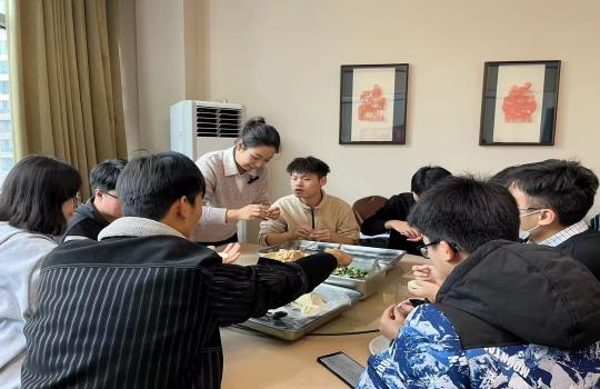 活动开始,杨倩老师向同学们讲述本次活动开展的意义及目的,将本次活动成员分为五组进行合作。在老师的指导下,大家开始动手包饺子,学习包饺子的技巧手法,锻炼了劳动能力。形状各异的饺子也包裹着大家对未来生活美好的期许。活动过程中,设置了“你划我猜”、“饺子大王”、“飞花令”等益智趣味游戏环节,同学们在游戏中展现了个人和团队的智慧和才华。饺子煮熟端上桌时,大家围坐在一起,品尝着亲手包的饺子,感受着浓浓的师生情和家乡味。