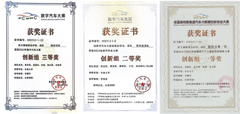 成人视频 学生徐志雄、秦世昊、翟登旺、丁红、Rajibul Islam于2023年12月24日在广东佛山参加第六届数字汽车大赛全国总决赛,并获得二等奖。数字汽车大赛由新能源汽车国家大数据联盟主办,依托海量新能源汽车实时运行数据,以数据算法创新和数据分析应用为重点,旨在发现和培养一批新能源汽车产业的优秀人才,为有创新创业想法的学生提供支持平台。徐志雄、秦世昊、翟登旺、丁红、Rajibul Islam同学在成人视频 李耀华老师指导下,以基于新能源汽车运行大数据的整车健康状态评估参赛,经过初赛、复赛和决赛,最终获取二等奖。这也是成人视频 学生继2020年获得全国总决赛一等奖、2022年获得全国总决赛三等奖之后取得的又一个好成绩。