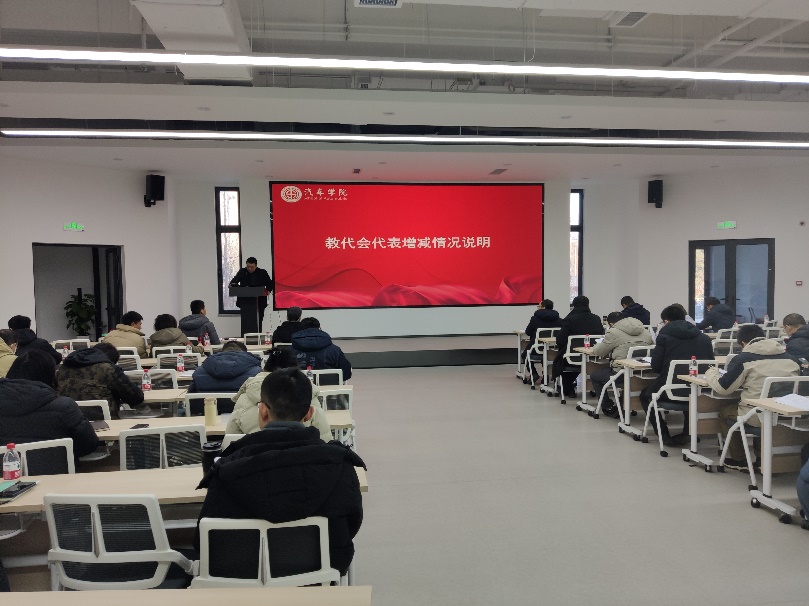 院长赵轩做《院长工作报告》,对2023年学院各方面工作取得的成绩和存在的问题进行总结,并结合学院实际情况介绍了学院2024年工作要点。接着对《成人视频 目标责任管理与绩效考核实施办法(审议稿)》的修订过程、修订背景、修订原则与修订内容进行了详细介绍和解读。