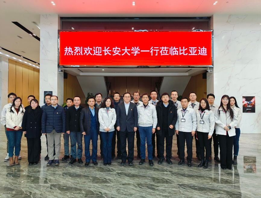 为贯彻落实党中央、国务院决策部署和教育部“全国高校毕业生就业创业促进行动”,搭建用人单位与院校交流平台,强化企业与院校深度合作,2024年1月11日下午,由副校长王建伟带队,学院党委书记林贵宝、院长赵轩、车辆工程系党支部、社会合作处支部党员代表等一行十余人,前往比亚迪西安高新工业园开展调研座谈活动。