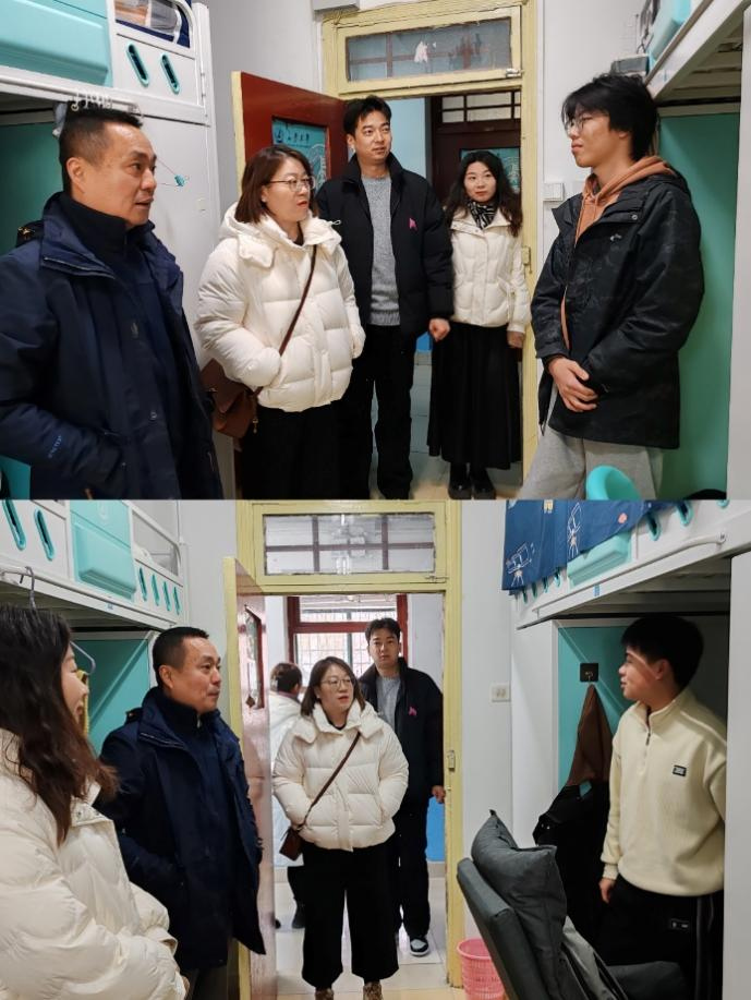 在走访过程中,各位领导老师与同学们亲切交流,详细询问大家的假期生活、学习情况及新学期计划等。老师们表示,学校始终把学生放在首位,希望同学们能够尽快调整状态,适应新学期的学习生活节奏,养成良好习惯,不断丰富大学生活。同时,各位老师还向同学们强调了宿舍安全、卫生的重要性,希望大家在新学期初开展好宿舍爱国卫生大扫除活动,开展宿舍安全隐患排查,共同营造和谐温馨的宿舍环境。