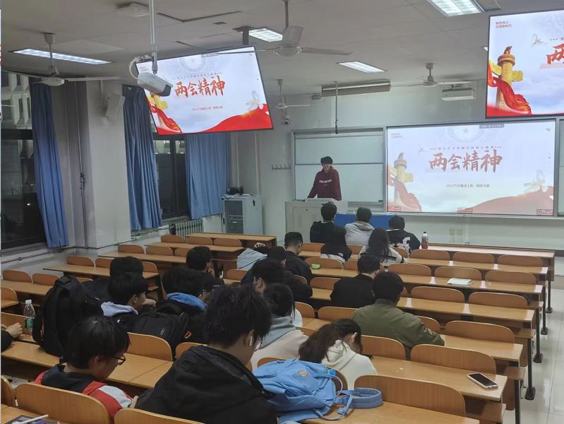 首先,团支书李雨航向大家分享了今年两会的一个关键词“AI+”。他介绍道“在今年的全国两会上,“人工智能”再度成为“热词”。它们在不同阶段推动了产业的转型升级。如今,随着大模型等人工智能技术成为引领新一代产业变革的核心力量,国家提出的“人工智能+”行动,不仅顺应了全球AI发展的潮流,更与中国产业升级的大势紧密相连。这一行动无疑将为人工智能技术在各行业的广泛应用开启新篇章。而作为新时代青年的我们,也应当顺应潮流,为国家发展做出贡献。”