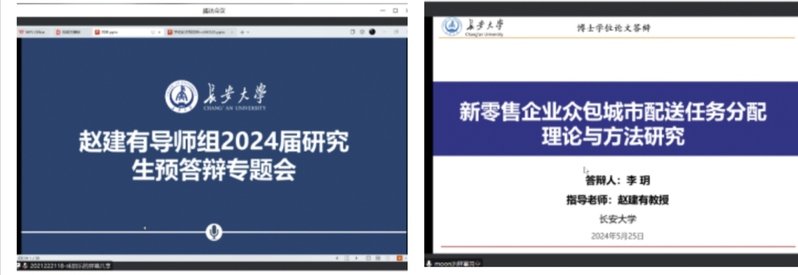 首先博士研究生李玥进行了汇报,李玥的学位论文题目为:《新零售企业众包城市配送任务分配理论与方法研究》。李玥从众包配送任务分配系统优化理论及问题拓展研究、双边动态在线场景下基于任务预测的新零售企业众包配送任务分配问题研究、耦合市场中基于定价策略的新零售企业众包配送任务分配问题研究、区块链背景下基于逆向投标的新零售企业众包配送任务分配问题研究等几个方面进行了汇报。崔健对李玥的论文内容进行了肯定,强调了答辩时间把握的重要性。叱干都对于专家意见回复给出了建议,建议李玥将专家意见采纳与否列表展示,来达到更加直观、简洁的效果。