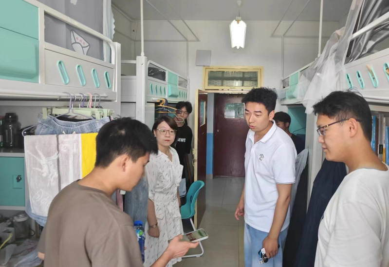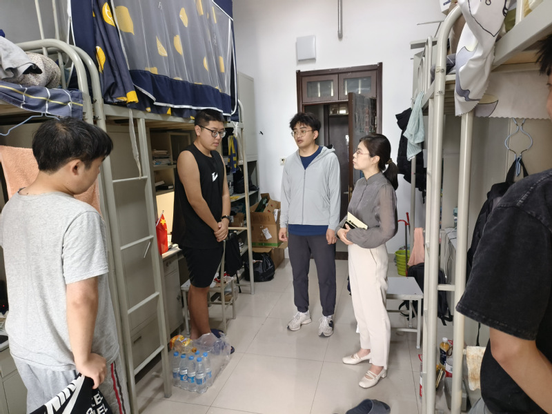 走访过程中,各位领导老师与同学们亲切交谈,共同探讨。在低年级学生宿舍,详细询问了大家近期的课程与考试情况,勉励同学们要珍惜良好的宿舍环境与同窗情谊,认真学习专业基础知识,克服慵懒麻痹思想,以青春之姿、奋斗之态投入到日常的学习生活中去。在高年级及毕业年级学生宿舍,逐一了解同学们当前的学业完成情况与未来的发展规划,认真倾听大家对于学校、学院发展的意见需求,鼓励同学们要以乐观积极的心态面对学习生活中的困难,学院亦将矢志不渝地为同学们的成长发展排忧解难、保驾护航。