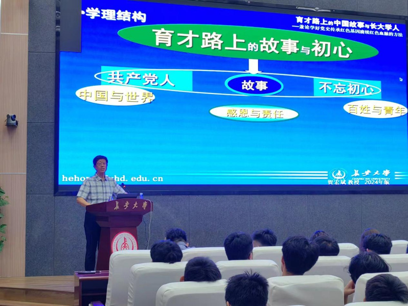 接着,通过讲述战争年代共产党人对教育的资助故事,贺教授展现了共产党人对教育事业的无私奉献和坚定信念。贺教授特别强调了长大学人在“资助育人”方面对党和国家作出的卓越贡献。通过播放《读懂中国》系列视频,他生动展现了数位长大教授在学术科研和教书育人中体现出的无私奉献精神。视频中的几位长大教授作为老一辈党员,他们始终坚守“国家所需,我必追求;党旗所向,我必奔赴”的崇高理想信念,为国家富强和民族复兴培养了一代又一代的杰出人才。