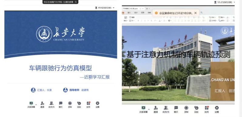 其次,硕士研究生令潇分享了《车辆跟驰行为仿真模型》有关内容,主要从模型选择、模型框架、数据选择三个方面展开;田浩分享了《基于注意力机制的车辆轨迹预测》,简单阐述了改进卷积池化模型方法,从输入上增加了速度和加速度,并引入CBAM注意力模块。侯雪作了《众包任务分配及路径优化》方面的汇报,主要从众包位置隐私建立模型提出众包路径优化思路;陶旭秋主要从论文撰写情况以及代码运行情况两个角度阐述了有关《考虑城乡三级物流配送体系的车辆与无人机协同配送路径研究》的进度,并分享了前期校外实习的相关情况;康宇分享了有关《自动驾驶车辆匝道合流区碰撞风险评估》的内容,主要涉及到主干线车辆在面对试图并入主干道的其他车辆的合并行为存在规避反应的研究。