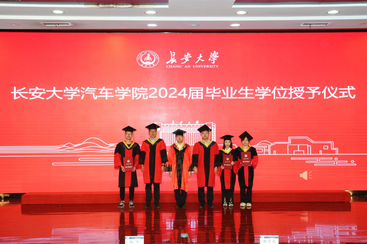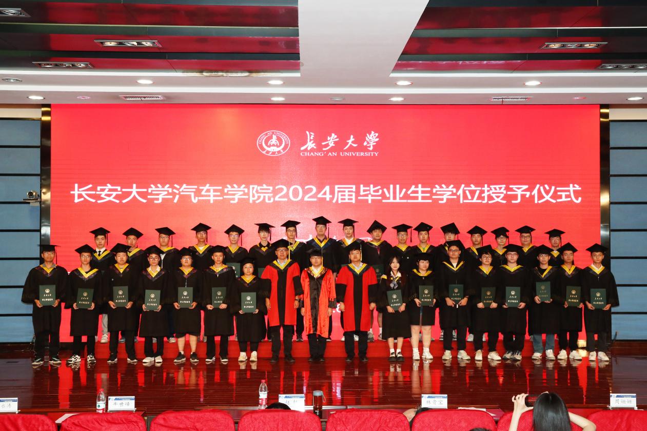 林贵宝宣读授予博士、硕士和学士学位学生名单,2024届毕业生身着学位服,按照专业、班级依次上台。成人视频 学位评定分委员会主席赵轩教授、委员牛世峰教授和陈轶嵩教授逐一为毕业生拨穗正冠,颁发学位证书,并合影留念。
