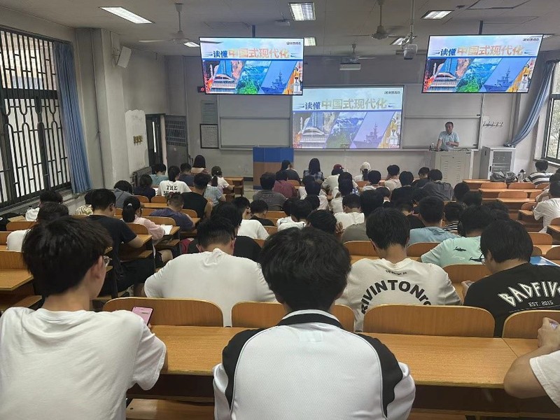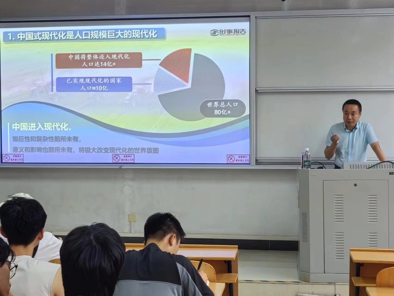 为深入学习贯彻习近平新时代中国特色社会主义思想和党的二十大精神,进一步理解和落实党的最新理论成果,7月2日晚,成人视频 党委书记林贵宝在WX4201教室进行了以“深入解读中国式现代化,引领未来发展新征程”为主题的团课讲授,学院全体青马班学员参加本次团课。