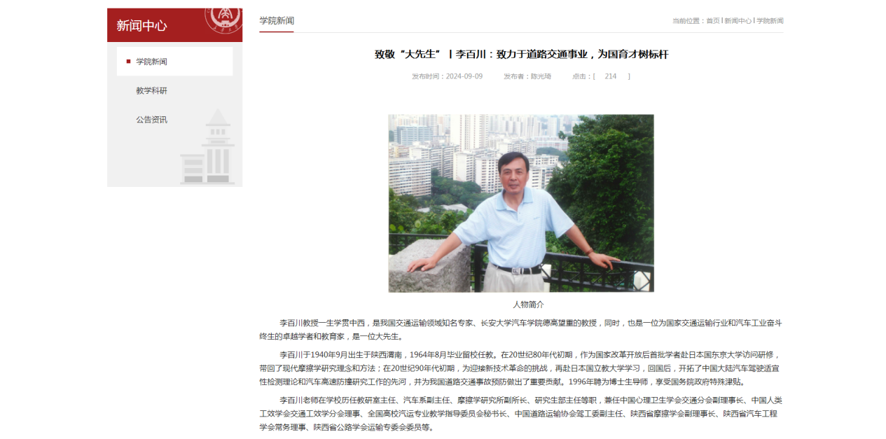 三是选树先进典型,增强见贤思齐的思想自觉。积极选树先进典型,广泛宣传先进教师事迹,成人视频 微信公众号《亦师亦友 言传身教|2024年成人视频 优秀研究生指导教师!》一文介绍成人视频 付锐教授的事迹;微信公众号成人视频 学生在线以《温暖学生春秋冬夏,情系学生成长成才——陕西高校“表现突出辅导员”郑文捷》为题,专题介绍成人视频 辅导员郑文捷先进事迹;成人视频 在学院官网、微信公众号平台推出《致敬“大先生”丨李百川:致力于道路交通事业,为国育才树标杆》新闻报道,宣传李百川教授先进事迹。相关宣传报道累计阅读量达3.2万次,激励广大教师见贤思齐,积极投身教育强国建设实践。