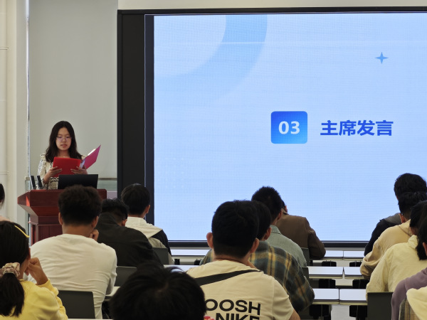 实践部部长王禹皓、策划部部长王义甫、办公室部长翟家桢、网宣部部长陈狄作为各部门代表,分别对过去一学年的工作内容做出总结,对新学年的工作计划做出安排,强调了团队共同努力的重要性,表达了对新成员开拓创新与积极参与工作的期许,共同书写彩虹心理协会的新篇章。新部员代表杨秋爽同学以充满激情的发言,表达了自己加入心协的憧憬,并承诺将以饱满的热情和坚定的信念,投入到组织的各项工作中,为彩虹心理协会贡献自己的力量。
