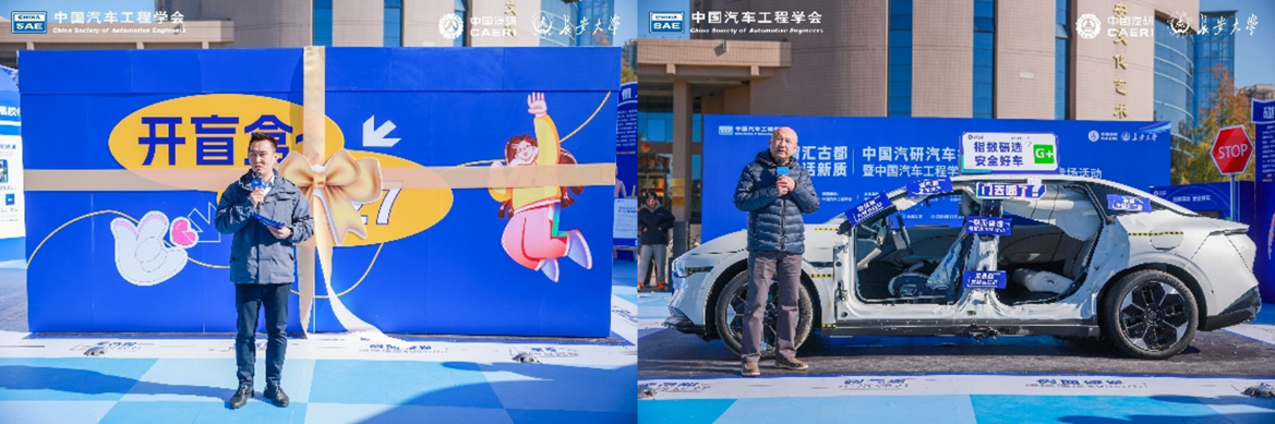 活动最后,各方领导共同启动了“创新引擎·汽车指数科技坊”,中国汽研品牌宣传中心副主任杭锦锋主持碰撞试验车开箱仪式,指数管理中心首席专家赵会深入浅出的向参展嘉宾和师生们解读了汽车侧碰试验的目的意义、测评规程亮点以及结果评价方式等,并对中国汽研自主研发的国内首个中国特色侧碰壁障AC-MDB、智能指数成人目标物和儿童目标物等进行了介绍。汽车指数科技坊通过实物展示、专业解读、互动体验、视频展播等多种形式,直观展示了中国汽研雄厚的科研实力以及3大汽车指数的最新研究成果等,得到参展嘉宾和师生们的一致认可和肯定。