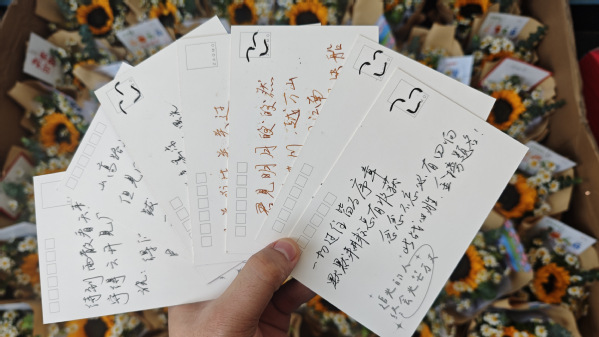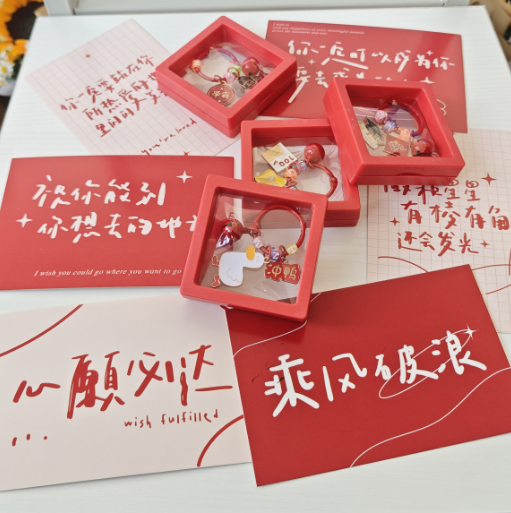 考研学子们抽取的挂坠和祝福贺卡