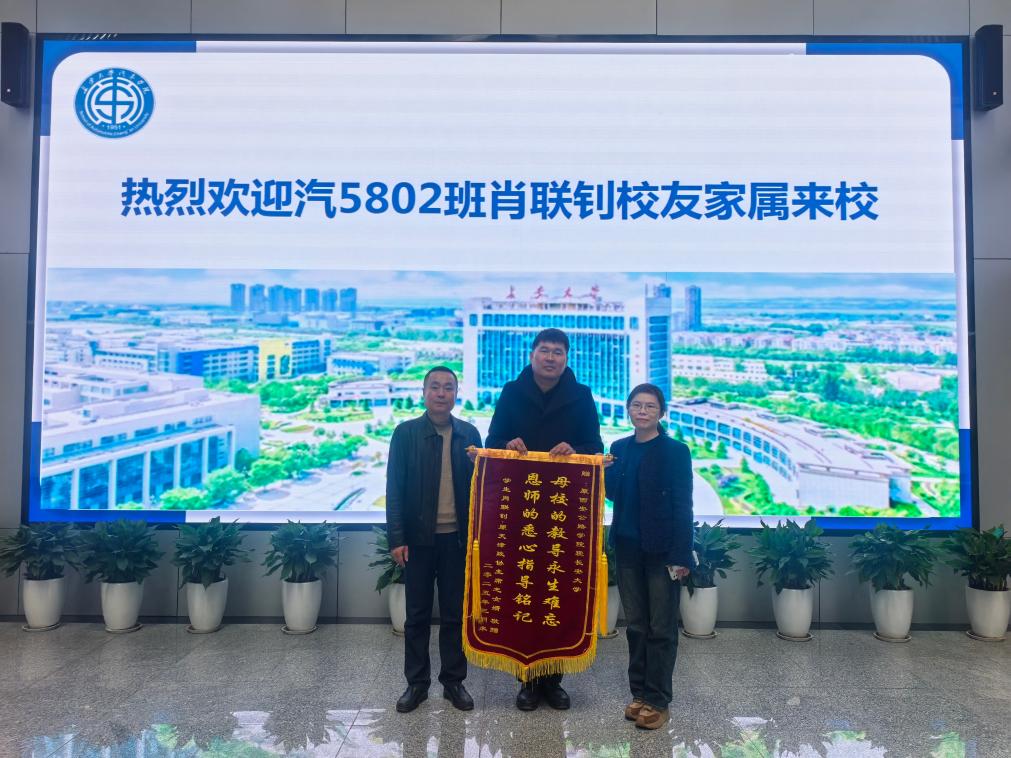 迎来了一场特殊的“圆梦之行”,学院已故校友汽车运用与修理专业汽5802班肖联钊的家属专程来校,代老人完成为母校赠送锦旗的遗愿,表达对母校培育之恩的深切感激,学院党委书记林贵宝,副书记、副院长周姗姗等接受锦旗。
