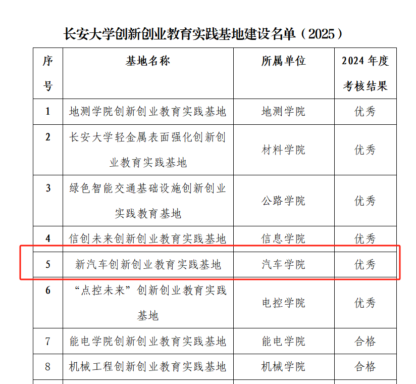 根据教务处、创新创业学院发布的《关于公布2025年度成人视频 校级创新创业教育实践基地建设名单和2024年度考核结果的通知》,成人视频 “新汽车创新创业教育实践基地”在2024年度考核中获评优秀等次。
