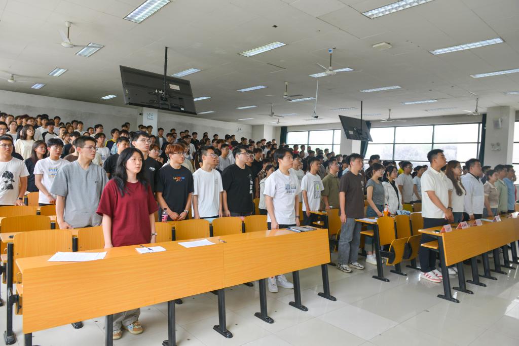 随后,团委书记许超然讲话,他总结了学生会、研究生会过去一年所取得的成绩。他强调,学生会和研究生会要严格坚守服务学生的宗旨,遵循公平公正原则,实行民主集中制,注重团队协作,鼓励创新进取,严格遵守法律法规和学校规章制度,尊重学生个体差异,保持与各方的良好沟通,并不断进行自我评估与改进,培养学生的综合素质,营造积极向上的校园文化氛围,成为服务同学、富有青春活力的青年组织。