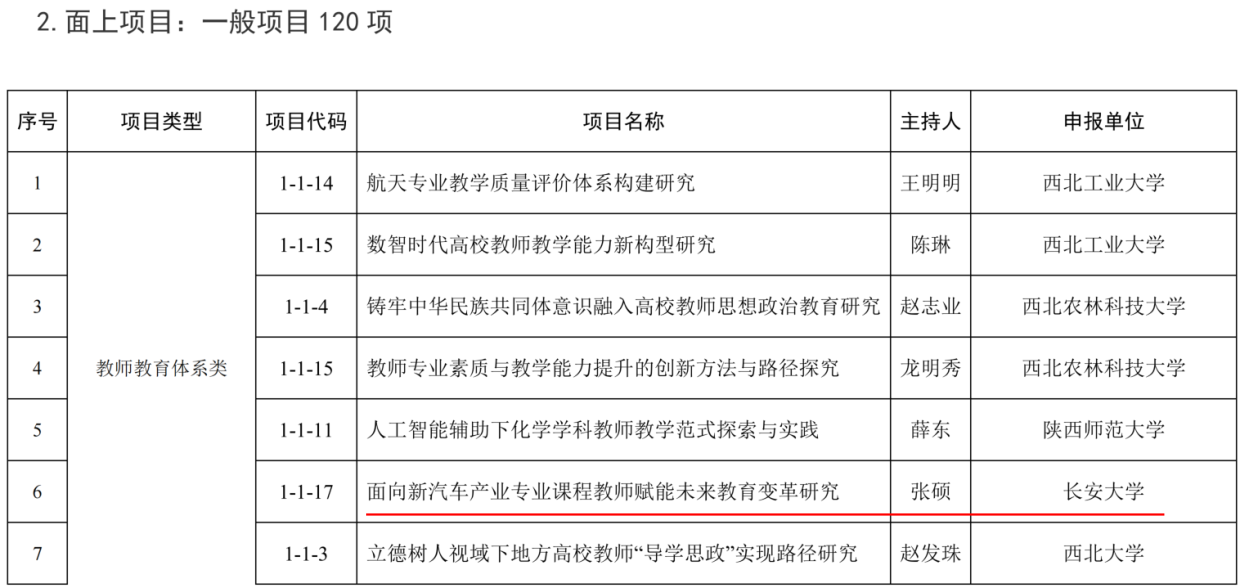 根据陕西省教师教育改革与教师发展研究项目管理办法的有关要求,陕西省教育厅组织开展了2025年度陕西省教师教育与教师发展研究项目申报和评审工作。经各单位申报、资格初审、申报公示、通讯评审和集中答辩等环节,确定拟立项教师项目369项,其中,面上项目150项(含重点项目30项,一般项目120项),人才专项项目219项。成人视频 教师张硕申报的面上项目一般项目“面向新汽车产业,专业课程教师赋能未来教育变革研究”获批立项。