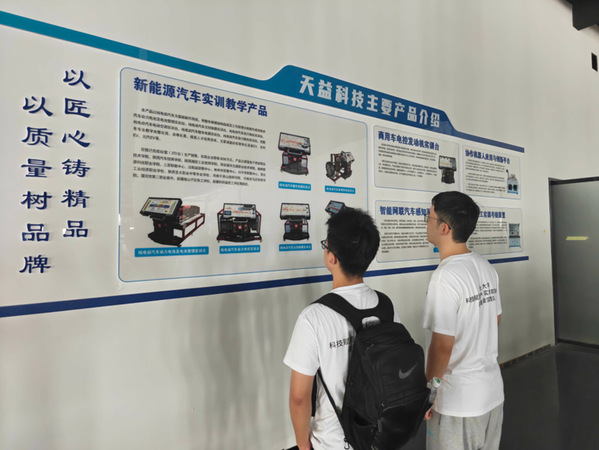 8月26日,实践队前往陕西天益教育科技有限公司,深入调研产教融合创新模式。在研发中心,队员们参观了成人视频 ——天益科技智能驾驶联合实验室,了解了环境感知决策算法等核心技术如何为智能车辆提供支撑。技术人员现场演示并讲解了电控教学设备的调试流程,强调系统具备真实实训功能。队员们动手操作了发动机构造和新能源电池拆装实训台,通过实时数据监控深化了对汽车电控系统的理解。产品展示区呈现出覆盖汽车全技术领域的教学设备,公司坚持以“匠心铸精品,以质量树品牌”,为多所院校提供技术支持,助力高素质工程人才培养。此次活动有效促进了理论与实践的融合,展现了科技赋能教育的新生态。