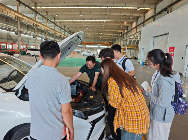 实践队深入江淮汽车集团。在钇威科技,校友座谈使队员们了解到车企为应对智能化趋势所作的战略调整与研发聚焦;在整车车间,电池与电控技术的实地观摩、未上市新车型的试驾体验,让大家感受到中国制造的质量跃升。下午在合工大创新中心,量子加密技术在车联网安全中的应用研究,拓宽了队员们对跨学科协同创新的认知边界。