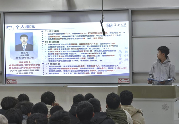 为引导学子锚定学业方向、昂扬奋进姿态,11月18日,学院在WM2201教室开展“榜样的力量”学习方法系列讲座第二讲,此次讲座特邀2022级车辆工程专业杜京阳同学进行经验分享。讲座由2025级辅导员羊家豪、俞菲凡主持,2025级全体本科生参加。