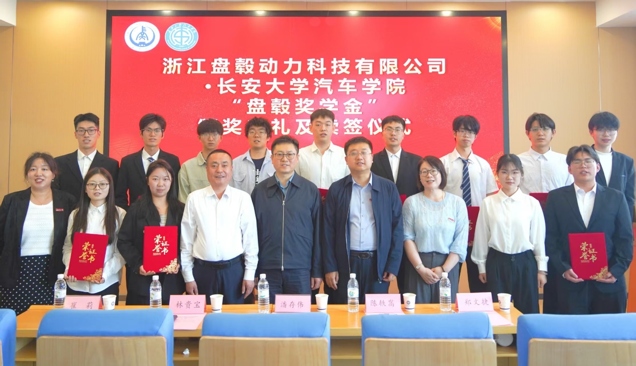 浙江盘毂动力科技有限公司总经理潘存伟代表企业与学院续签“盘毂奖学金”并为获奖学生颁奖,激励学院青年学子勤奋学习、追求卓越,为培养高素质汽车人才注入了强劲动力。